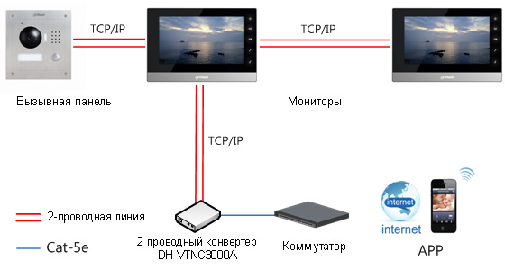 2-Проводная технология передачи данных. На базе конвертера, который позволяет подключать IP домофоны и вызывные панели компании Dahua вдоль двухпроводной или коаксиальной линии, даже в аналоговой среде, или в месте с ограниченной инфраструктурой. Основным преимуществом является то, что вам нужно всего лишь один двух жильный кабель для передачи данных и питания.