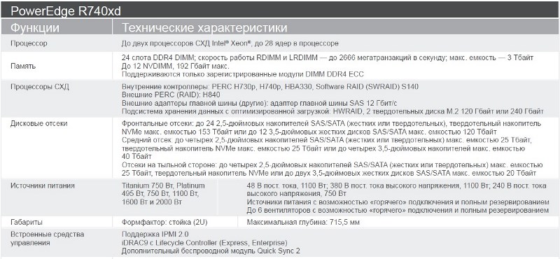 Используйте преимущества производительности масштабируемого хранилища и обработки наборов данных, предоставляемые сервером PowerEdge R740xd. Эта двухпроцессорная платформа форм-фактора 2U обеспечивает масштабируемость и производительность для широкого спектра приложений. На выбор доступны до 24 накопителей NVMe или в общей сложности 32 x 2,5" или 18 x 3,5" накопителей. По мере масштабирования развертываемых систем можно наращивать производительность с помощью встроенных функций анализа и автоматизации iDRAC9 и всего портфеля решений OpenManage, который позволяет упростить жизненный цикл ИТ — от развертывания до вывода из эксплуатации.